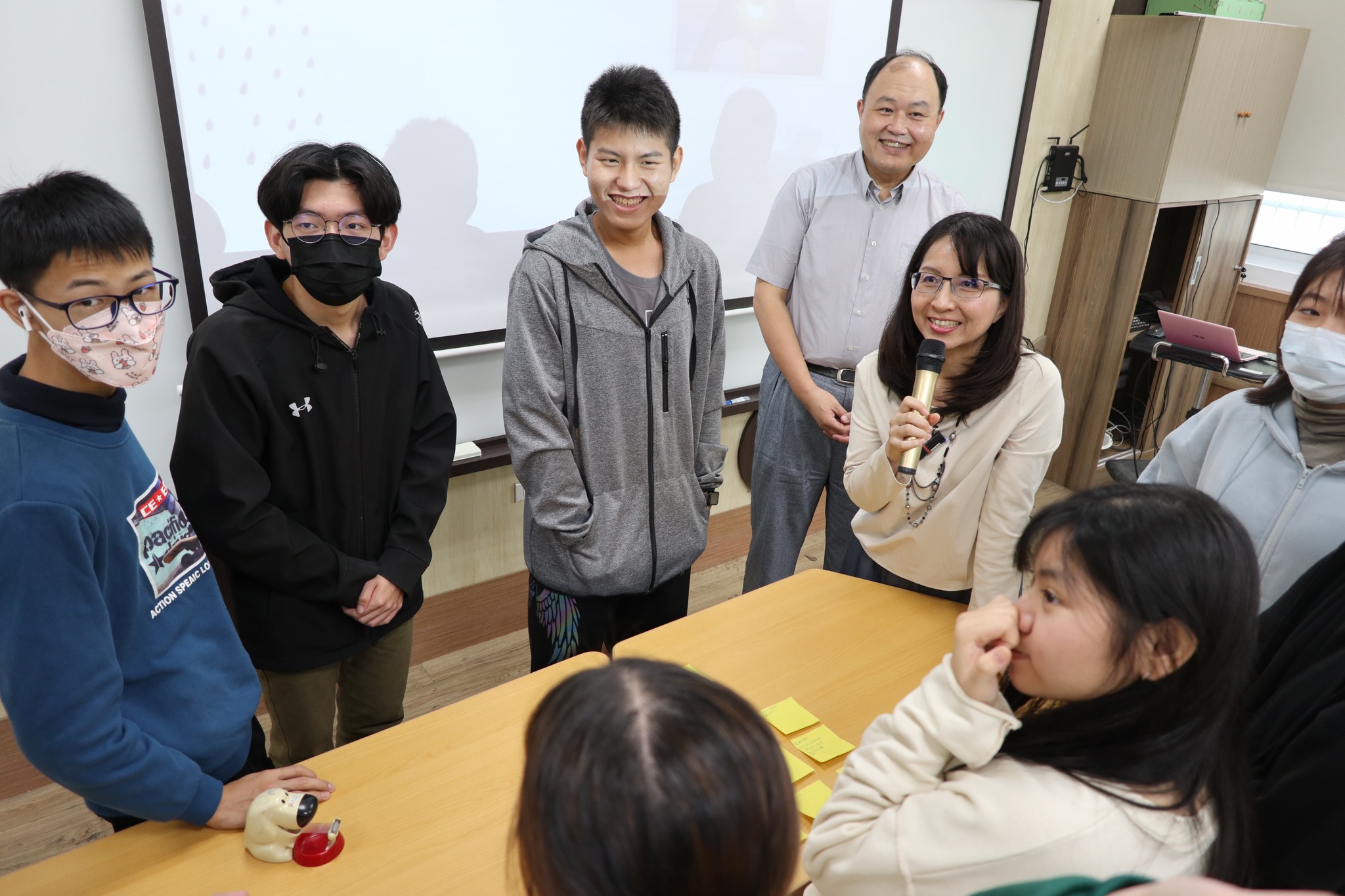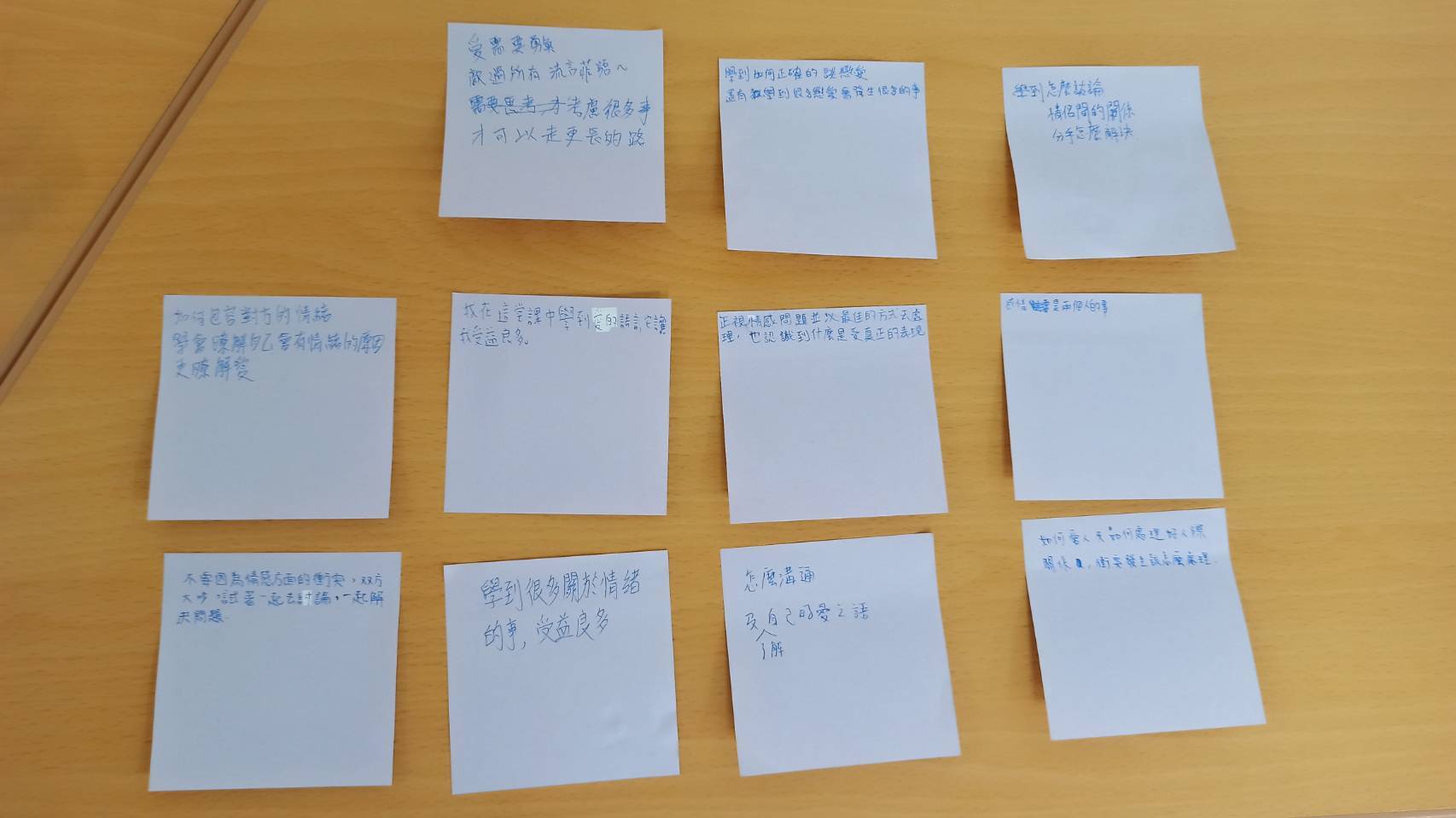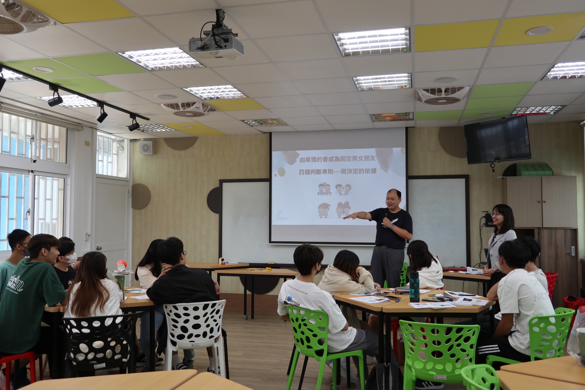💞透過觀賞影片、小組討論和發表、體驗遊戲,怡伶老師帶領同學們更多覺察自己的感情觀,蔡老師也以男生的角度,分享自己的失敗經驗,在場的男同學們更是專注聆聽,彼此互動熱絡,笑聲此起彼落。😊